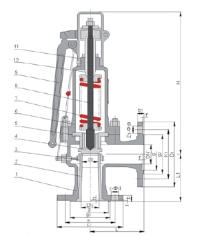 产品概述A47H型带扳手弹簧微启式安全阀适用于工作温度≤350℃的蒸汽、空气等介质的设备或管路上。作为超压保护装置。连接法兰标准按JB/T-94的系列1。 主要零部件材料