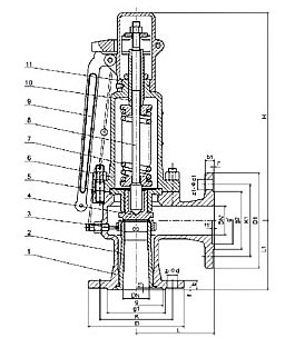 A61H/Y60、A61H/Y-320型弹簧微启式空压机安全阀适用于工作温度≤200℃的空气、氨、石油气等介质的设备和管路上,A61Y60P、A61Y-320P型适用于工作温度≤200℃含腐蚀性的气体或液体的的设备和管路上,作为超压保护装置。 主要外型尺寸和连接尺寸
