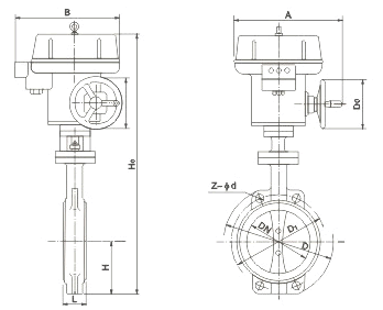 WBEX(D972X)-6/10/16电动对夹式软密封蝶阀主要外形连接尺寸 单位:mm