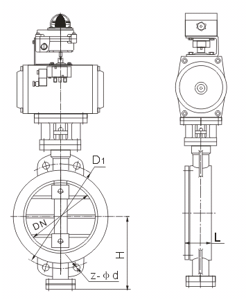 D673H0/16/气动对夹式硬密封蝶阀主要外形连接尺寸(单位:mm)