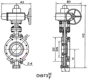 | 产品概述 D973H电动对夹式硬密封蝶阀、电动对夹式蝶饭,采用精密的J形弹性密封圈和三偏心多层次金属硬密封结构,被广泛用于介质温度≤425℃的治金 、电力、石油化工、以及给排水和市政建设等工业管道上,作调节流量和载断流体使用。该阀采用三偏心结构,阀座与碟板密封面均采用不同硬度和不锈钢制作,具有良好的耐腐蚀性,使用寿命长,本阀具有双向密封功能,产品符合国家GB/T13927-92阀门压力试验标准。 产品特点 1、本阀采用三偏心密封结构,阀座与蝶板磨损小。 2、密封圈选用不锈钢制作,具有金属硬密封和弹性密封的双重优点,无论在低温和高温的情况下,均具有优良的密封性能,具有耐腐蚀,使用寿命长等特点。 3、碟板密封面采用堆焊钴基硬质合金,密封面耐磨损,使用寿命长. 4、大规格蝶板采用绗架结构,强度高,过流面积大,流阻小。 5、本阀具有双向密封功能,安装时不受介质流向的限制,也不受空间位置的影响,可在任何方向安装。 6、驱动装置可以多工位(旋转90°或180°)安装,便于用户使用。 三、主要技术参数
