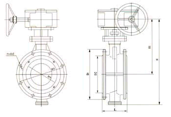 D343H0/16/25/蜗轮传动硬密封蝶阀主要外形连接尺寸 (单位:mm)