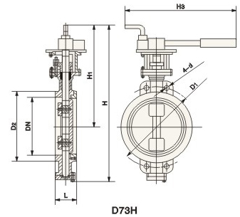 D73H0/16/25/对夹式硬密封蝶阀主要外形连接尺寸(单位:mm)