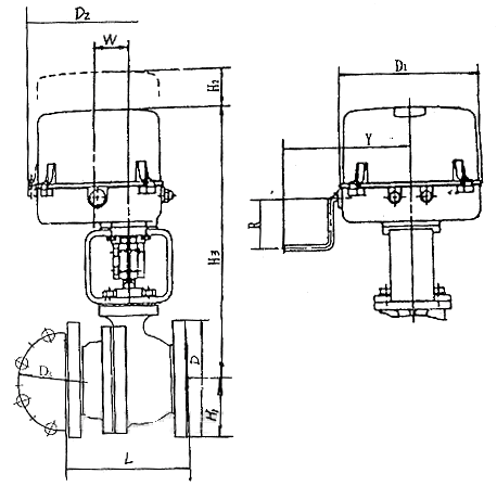 | 外形尺寸 | PN16电动O型切断球阀外形尺寸 mm |