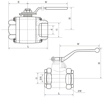 产品特征 公称压力:10~32MPa 适用温度范围:-20~150℃ 适用介质:水、油、气及某些腐蚀性液体。 螺纹类型:G.NPT.BSPT.BSP.DIN259/2999 PN1.6MPa主要连接尺寸及重量 单位:mm