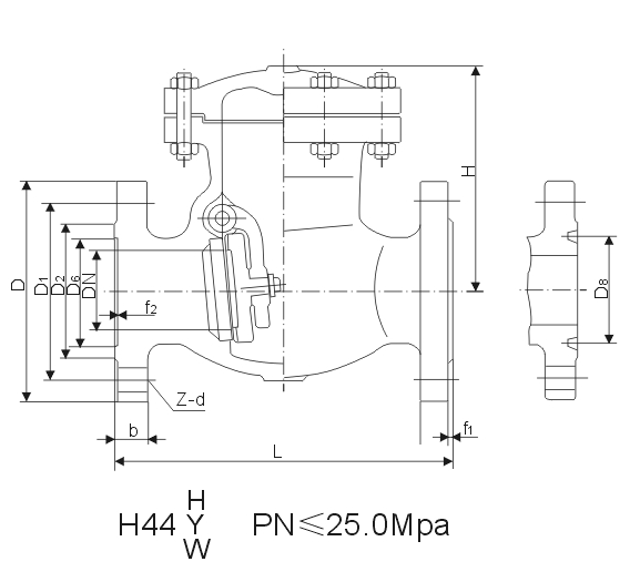 结构长度:GB12221-89 法兰标准:JB79-94 设计标准:GB/T12235-89 试压标准:GB/T13927-92 主要外型及连接尺寸(mm)H44 H Y W-200
